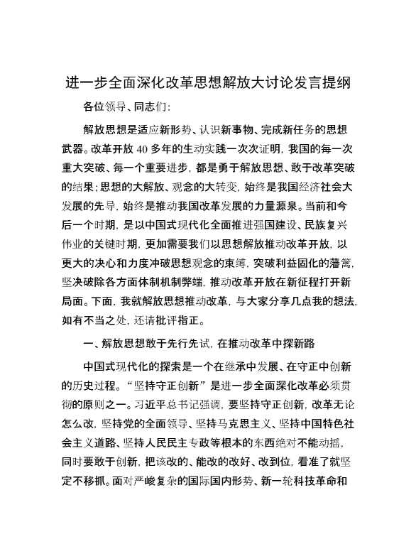 进一步全面深化改革思想解放大讨论发言提纲 2025-01-14 Word模板 58 购买前,请一定要先点击这里看看,欢迎持续关注,精彩模板每天推送 预览结束,本文件为word文档,一共7页,共3645字,请购买后,下载后查看 购买前,请一定要先点击这里看看,欢迎持续关注,精彩模板每天推送 资源下载下载价格29 RMBVIP免费升级VIP点击检测网盘有效后购买有任何充值和下载问题请加微信:xuexixuexi66 0 演讲发言