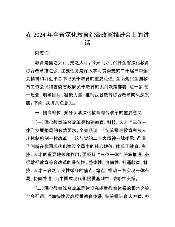 在2024年全省深化教育综合改革推进会上的讲话 2025-01-14 Word模板 59 购买前,请一定要先点击这里看看,欢迎持续关注,精彩模板每天推送 预览结束,本文件为word文档,一共7页,共3304字,请购买后,下载后查看 购买前,请一定要先点击这里看看,欢迎持续关注,精彩模板每天推送 资源下载下载价格29 RMBVIP免费升级VIP点击检测网盘有效后购买有任何充值和下载问题请加微信:xuexixuexi66 0 演讲发言