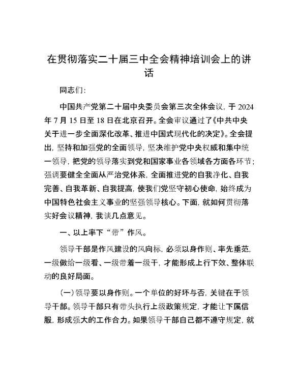 在贯彻落实二十届三中全会精神培训会上的讲话 2025-01-14 Word模板 53 购买前,请一定要先点击这里看看,欢迎持续关注,精彩模板每天推送 预览结束,本文件为word文档,一共5页,共2113字,请购买后,下载后查看 购买前,请一定要先点击这里看看,欢迎持续关注,精彩模板每天推送 资源下载下载价格29 RMBVIP免费升级VIP点击检测网盘有效后购买有任何充值和下载问题请加微信:xuexixuexi66 0 演讲发言