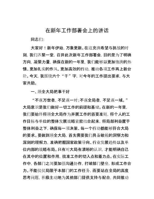 在新年工作部署会上的讲话 2025-01-14 Word模板 58 购买前,请一定要先点击这里看看,欢迎持续关注,精彩模板每天推送 预览结束,本文件为word文档,一共7页,共3005字,请购买后,下载后查看 购买前,请一定要先点击这里看看,欢迎持续关注,精彩模板每天推送 资源下载下载价格29 RMBVIP免费升级VIP点击检测网盘有效后购买有任何充值和下载问题请加微信:xuexixuexi66 0 演讲发言