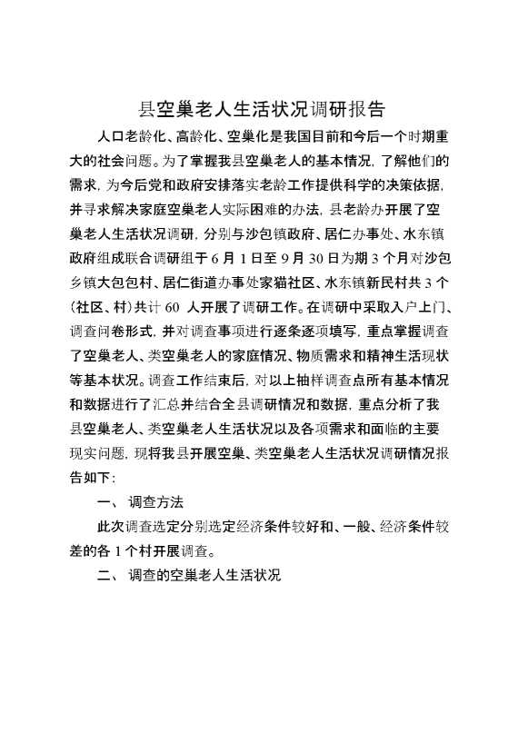 县空巢老人生活状况调研报告 2025-01-24 Word模板 89 购买前,请一定要先点击这里看看,欢迎持续关注,精彩模板每天推送 预览结束,本文件为word文档,一共8页,共3358字,请购买后,下载后查看 购买前,请一定要先点击这里看看,欢迎持续关注,精彩模板每天推送 资源下载下载价格29 RMBVIP免费升级VIP点击检测网盘有效后购买有任何充值和下载问题请加微信:xuexixuexi66 0 总结汇报
