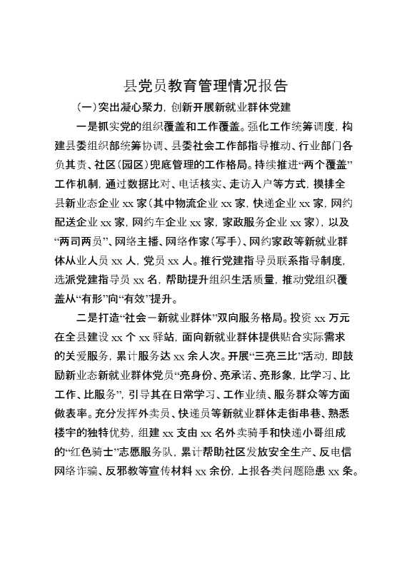 县党员教育管理情况报告 2025-01-24 Word模板 89 购买前,请一定要先点击这里看看,欢迎持续关注,精彩模板每天推送 预览结束,本文件为word文档,一共4页,共1988字,请购买后,下载后查看 购买前,请一定要先点击这里看看,欢迎持续关注,精彩模板每天推送 资源下载下载价格29 RMBVIP免费升级VIP点击检测网盘有效后购买有任何充值和下载问题请加微信:xuexixuexi66 0 总结汇报