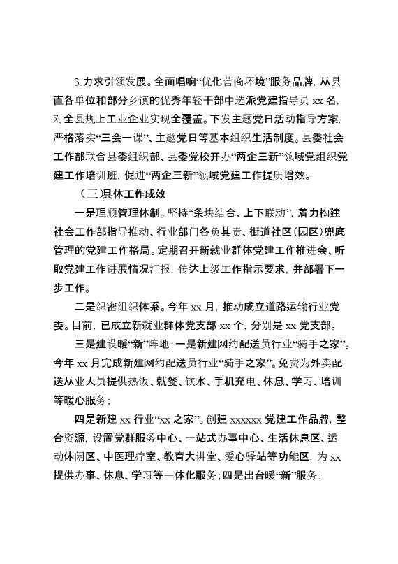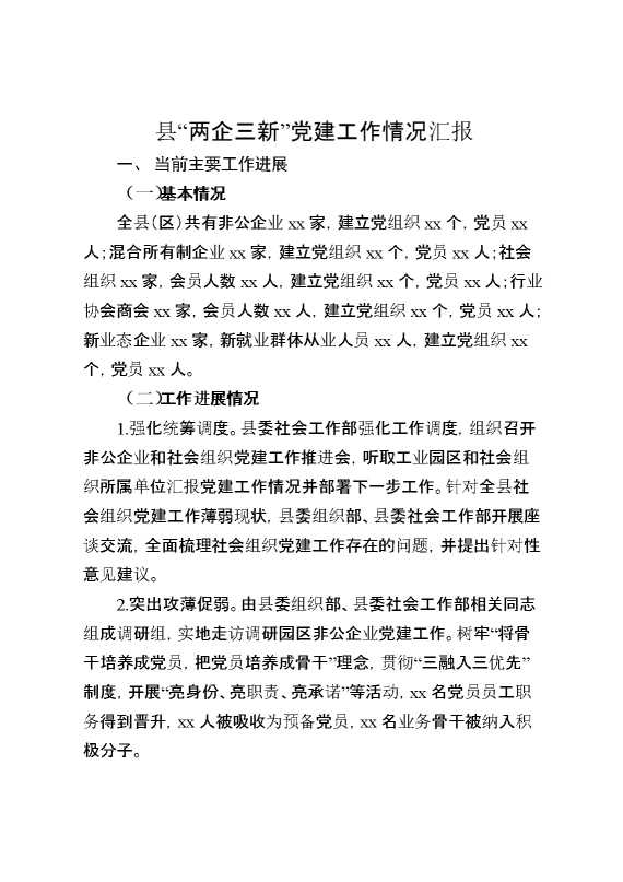 县“两企三新”党建工作情况汇报 2025-01-24 Word模板 94 购买前,请一定要先点击这里看看,欢迎持续关注,精彩模板每天推送 预览结束,本文件为word文档,一共4页,共1670字,请购买后,下载后查看 购买前,请一定要先点击这里看看,欢迎持续关注,精彩模板每天推送 资源下载下载价格29 RMBVIP免费升级VIP点击检测网盘有效后购买有任何充值和下载问题请加微信:xuexixuexi66 0 总结汇报