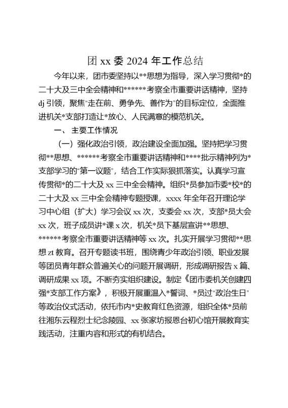 团XX委2024年工作总结 2025-01-24 Word模板 92 购买前,请一定要先点击这里看看,欢迎持续关注,精彩模板每天推送 预览结束,本文件为word文档,一共5页,共2441字,请购买后,下载后查看 购买前,请一定要先点击这里看看,欢迎持续关注,精彩模板每天推送 资源下载下载价格29 RMBVIP免费升级VIP点击检测网盘有效后购买有任何充值和下载问题请加微信:xuexixuexi66 0 总结汇报