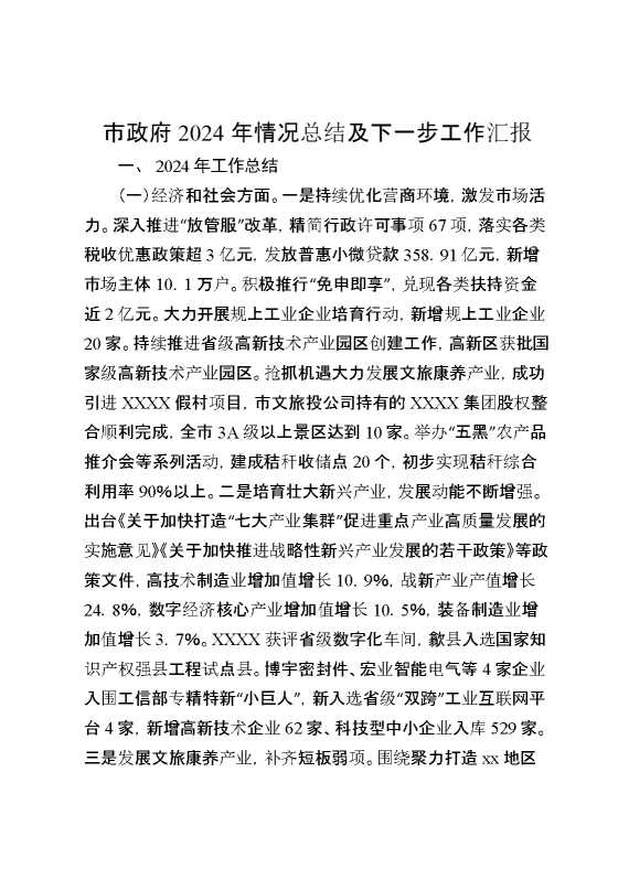 市政府2024年情况总结及下一步工作汇报 2025-01-24 Word模板 91 购买前,请一定要先点击这里看看,欢迎持续关注,精彩模板每天推送 预览结束,本文件为word文档,一共9页,共4548字,请购买后,下载后查看 购买前,请一定要先点击这里看看,欢迎持续关注,精彩模板每天推送 资源下载下载价格29 RMBVIP免费升级VIP点击检测网盘有效后购买有任何充值和下载问题请加微信:xuexixuexi66 0 总结汇报