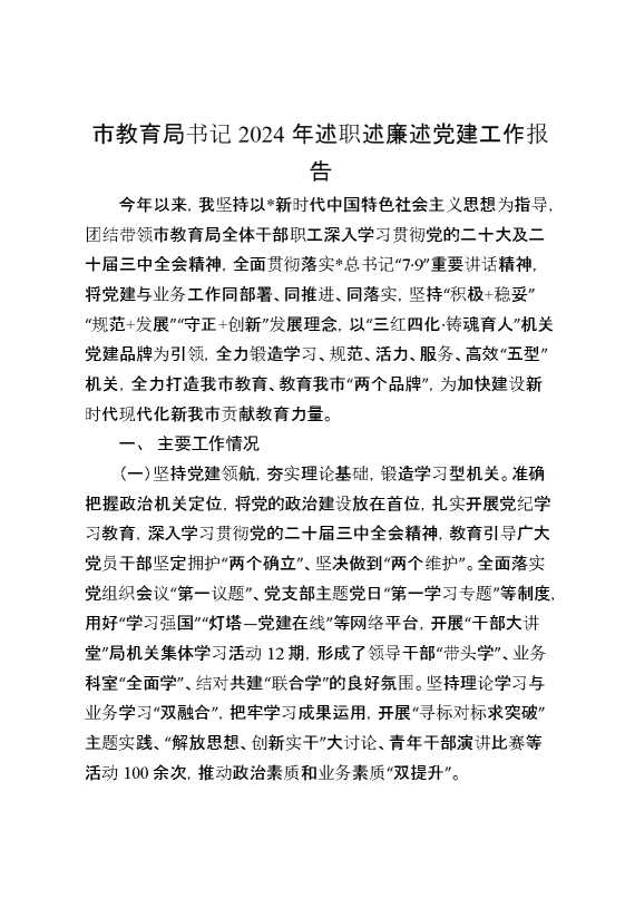 市教育局书记2024年述职述廉述党建工作报告 2025-01-24 Word模板 90 购买前,请一定要先点击这里看看,欢迎持续关注,精彩模板每天推送 预览结束,本文件为word文档,一共6页,共2721字,请购买后,下载后查看 购买前,请一定要先点击这里看看,欢迎持续关注,精彩模板每天推送 资源下载下载价格29 RMBVIP免费升级VIP点击检测网盘有效后购买有任何充值和下载问题请加微信:xuexixuexi66 0 总结汇报