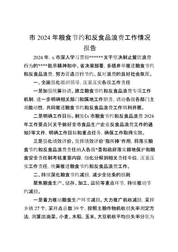市2024年粮食节约和反食品浪费工作情况报告 2025-01-24 Word模板 96 购买前,请一定要先点击这里看看,欢迎持续关注,精彩模板每天推送 预览结束,本文件为word文档,一共5页,共2159字,请购买后,下载后查看 购买前,请一定要先点击这里看看,欢迎持续关注,精彩模板每天推送 资源下载下载价格29 RMBVIP免费升级VIP点击检测网盘有效后购买有任何充值和下载问题请加微信:xuexixuexi66 0 总结汇报