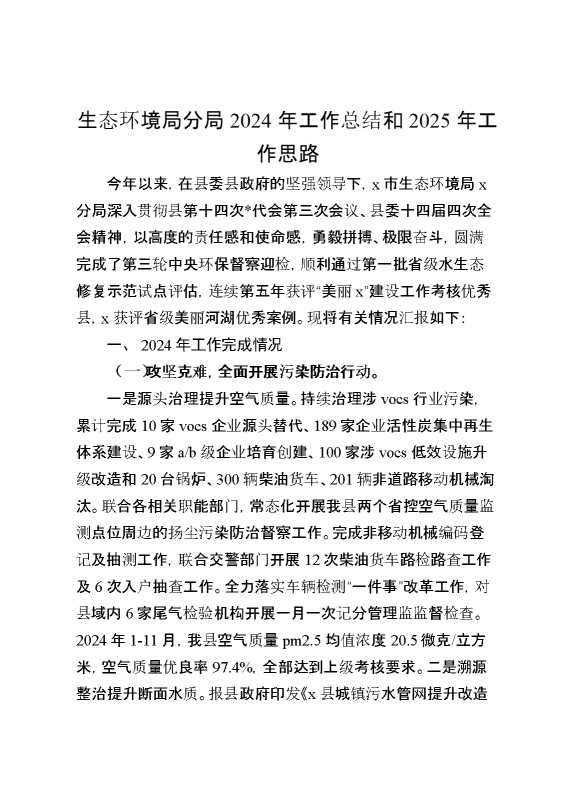 生态环境局分局2024年工作总结和2025年工作思路计划 2025-01-24 Word模板 107 购买前,请一定要先点击这里看看,欢迎持续关注,精彩模板每天推送 预览结束,本文件为word文档,一共9页,共4622字,请购买后,下载后查看 购买前,请一定要先点击这里看看,欢迎持续关注,精彩模板每天推送 资源下载下载价格29 RMBVIP免费升级VIP点击检测网盘有效后购买有任何充值和下载问题请加微信:xuexixuexi66 0 总结汇报