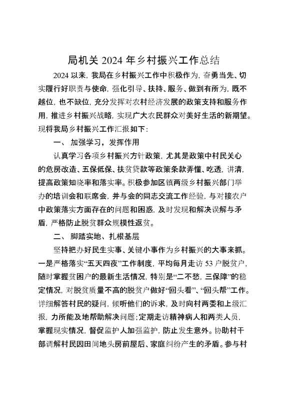局机关2024年乡村振兴工作总结 2025-01-24 Word模板 116 购买前,请一定要先点击这里看看,欢迎持续关注,精彩模板每天推送 预览结束,本文件为word文档,一共3页,共1059字,请购买后,下载后查看 购买前,请一定要先点击这里看看,欢迎持续关注,精彩模板每天推送 资源下载下载价格29 RMBVIP免费升级VIP点击检测网盘有效后购买有任何充值和下载问题请加微信:xuexixuexi66 0 总结汇报
