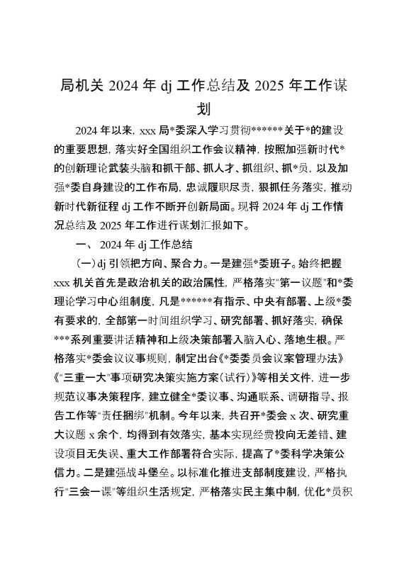 局机关2024年党建工作总结及2025年工作谋划计划 2025-01-24 Word模板 90 购买前,请一定要先点击这里看看,欢迎持续关注,精彩模板每天推送 预览结束,本文件为word文档,一共8页,共4145字,请购买后,下载后查看 购买前,请一定要先点击这里看看,欢迎持续关注,精彩模板每天推送 资源下载下载价格29 RMBVIP免费升级VIP点击检测网盘有效后购买有任何充值和下载问题请加微信:xuexixuexi66 0 总结汇报