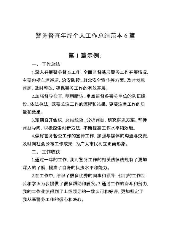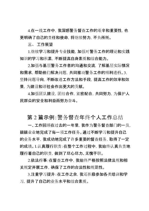 警务督查年终个人工作总结范本6篇 2025-01-24 Word模板 90 购买前,请一定要先点击这里看看,欢迎持续关注,精彩模板每天推送 预览结束,本文件为word文档,一共10页,共4259字,请购买后,下载后查看 购买前,请一定要先点击这里看看,欢迎持续关注,精彩模板每天推送 资源下载下载价格29 RMBVIP免费升级VIP点击检测网盘有效后购买有任何充值和下载问题请加微信:xuexixuexi66 0 总结汇报