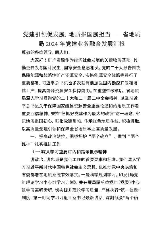 党建引领促发展,地质报国展担当——省地质局2024年党建业务融合发展汇报 2025-01-24 Word模板 83 购买前,请一定要先点击这里看看,欢迎持续关注,精彩模板每天推送 预览结束,本文件为word文档,一共6页,共2586字,请购买后,下载后查看 购买前,请一定要先点击这里看看,欢迎持续关注,精彩模板每天推送 资源下载下载价格29 RMBVIP免费升级VIP立即购买有任何充值和下载问题请加微信:xuexixuexi66 0 总结汇报