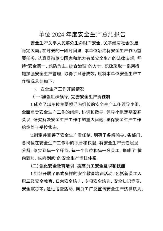 单位2024年度安全生产总结报告 2025-01-24 Word模板 86 购买前,请一定要先点击这里看看,欢迎持续关注,精彩模板每天推送 预览结束,本文件为word文档,一共9页,共3975字,请购买后,下载后查看 购买前,请一定要先点击这里看看,欢迎持续关注,精彩模板每天推送 资源下载下载价格29 RMBVIP免费升级VIP点击检测网盘有效后购买有任何充值和下载问题请加微信:xuexixuexi66 0 总结汇报