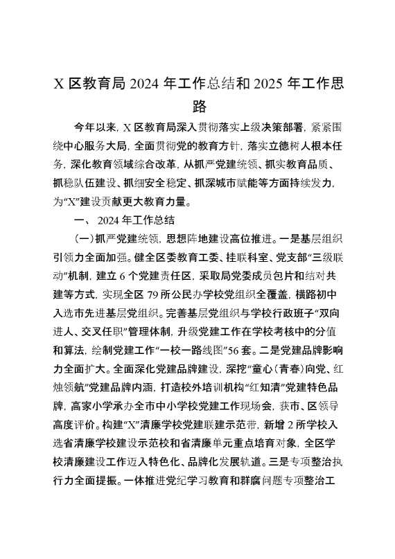 X区教育局2024年工作总结和2025年工作思路 2025-01-24 Word模板 91 购买前,请一定要先点击这里看看,欢迎持续关注,精彩模板每天推送 预览结束,本文件为word文档,一共7页,共3295字,请购买后,下载后查看 购买前,请一定要先点击这里看看,欢迎持续关注,精彩模板每天推送 资源下载下载价格29 RMBVIP免费升级VIP点击检测网盘有效后购买有任何充值和下载问题请加微信:xuexixuexi66 0 总结汇报