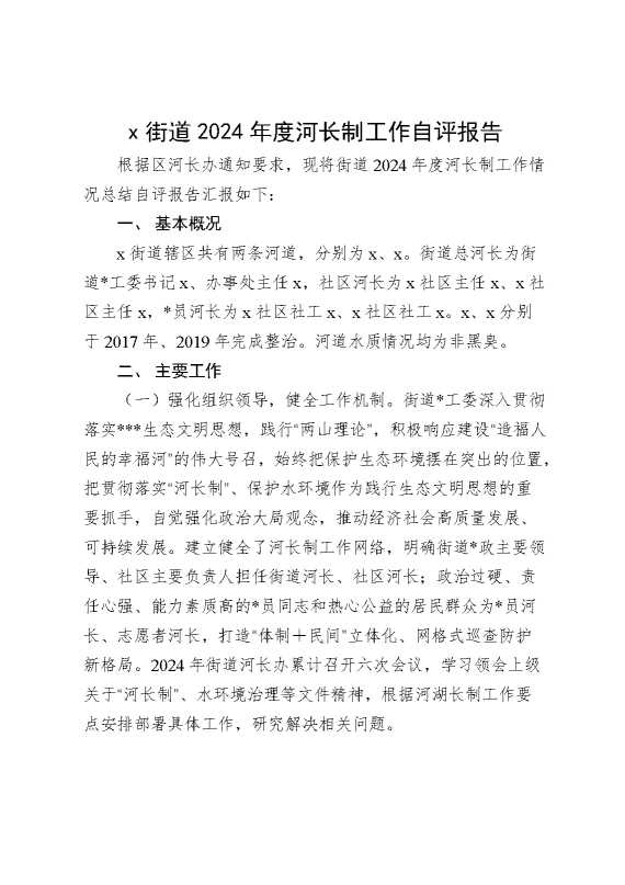 X街道2024年度河长制工作自评报告 2025-01-24 Word模板 87 购买前,请一定要先点击这里看看,欢迎持续关注,精彩模板每天推送 预览结束,本文件为word文档,一共6页,共2792字,请购买后,下载后查看 购买前,请一定要先点击这里看看,欢迎持续关注,精彩模板每天推送 资源下载下载价格29 RMBVIP免费升级VIP点击检测网盘有效后购买有任何充值和下载问题请加微信:xuexixuexi66 0 总结汇报