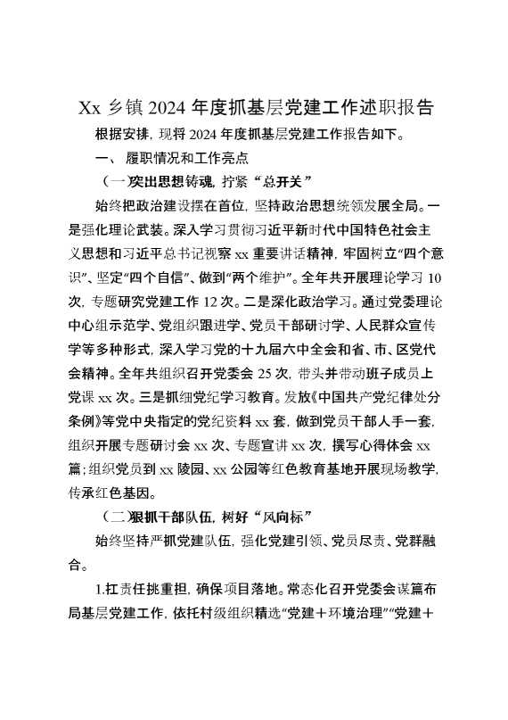 XX乡镇2024年度抓基层党建工作述职报告 2025-01-24 Word模板 121 购买前,请一定要先点击这里看看,欢迎持续关注,精彩模板每天推送 预览结束,本文件为word文档,一共5页,共2175字,请购买后,下载后查看 购买前,请一定要先点击这里看看,欢迎持续关注,精彩模板每天推送 资源下载下载价格29 RMBVIP免费升级VIP点击检测网盘有效后购买有任何充值和下载问题请加微信:xuexixuexi66 0 总结汇报