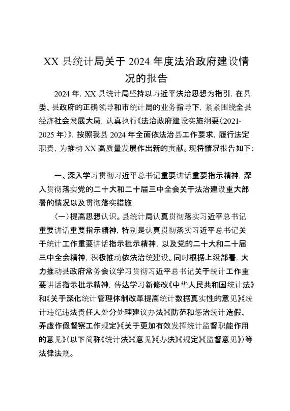 XX县统计局关于2024年度法治政府建设情况的报告 2025-01-24 Word模板 88 购买前,请一定要先点击这里看看,欢迎持续关注,精彩模板每天推送 预览结束,本文件为word文档,一共7页,共3384字,请购买后,下载后查看 购买前,请一定要先点击这里看看,欢迎持续关注,精彩模板每天推送 资源下载下载价格29 RMBVIP免费升级VIP点击检测网盘有效后购买有任何充值和下载问题请加微信:xuexixuexi66 0 总结汇报