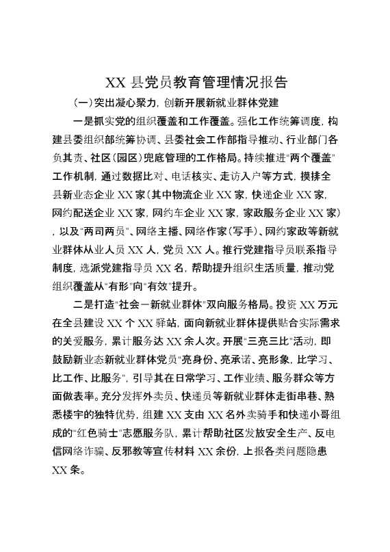 XX县党员教育管理情况报告 2025-01-24 Word模板 119 购买前,请一定要先点击这里看看,欢迎持续关注,精彩模板每天推送 预览结束,本文件为word文档,一共4页,共1990字,请购买后,下载后查看 购买前,请一定要先点击这里看看,欢迎持续关注,精彩模板每天推送 资源下载下载价格29 RMBVIP免费升级VIP点击检测网盘有效后购买有任何充值和下载问题请加微信:xuexixuexi66 0 总结汇报