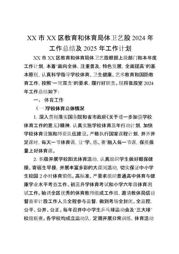 XX市XX区教育和体育局体卫艺股2024年工作总结及2025年工作计划 2025-01-24 Word模板 119 购买前,请一定要先点击这里看看,欢迎持续关注,精彩模板每天推送 预览结束,本文件为word文档,一共9页,共4482字,请购买后,下载后查看 购买前,请一定要先点击这里看看,欢迎持续关注,精彩模板每天推送 资源下载下载价格29 RMBVIP免费升级VIP点击检测网盘有效后购买有任何充值和下载问题请加微信:xuexixuexi66 0 总结汇报