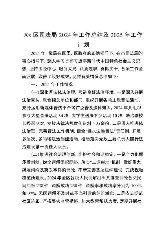 XX区司法局2024年工作总结及2025年工作计划 2025-01-24 Word模板 88 购买前,请一定要先点击这里看看,欢迎持续关注,精彩模板每天推送 预览结束,本文件为word文档,一共4页,共1736字,请购买后,下载后查看 购买前,请一定要先点击这里看看,欢迎持续关注,精彩模板每天推送 资源下载下载价格29 RMBVIP免费升级VIP点击检测网盘有效后购买有任何充值和下载问题请加微信:xuexixuexi66 0 总结汇报