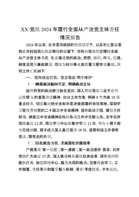 XX党组2024年履行全面从严治党主体责任情况报告 2025-01-24 Word模板 88 购买前,请一定要先点击这里看看,欢迎持续关注,精彩模板每天推送 预览结束,本文件为word文档,一共9页,共3995字,请购买后,下载后查看 购买前,请一定要先点击这里看看,欢迎持续关注,精彩模板每天推送 资源下载下载价格29 RMBVIP免费升级VIP点击检测网盘有效后购买有任何充值和下载问题请加微信:xuexixuexi66 0 总结汇报