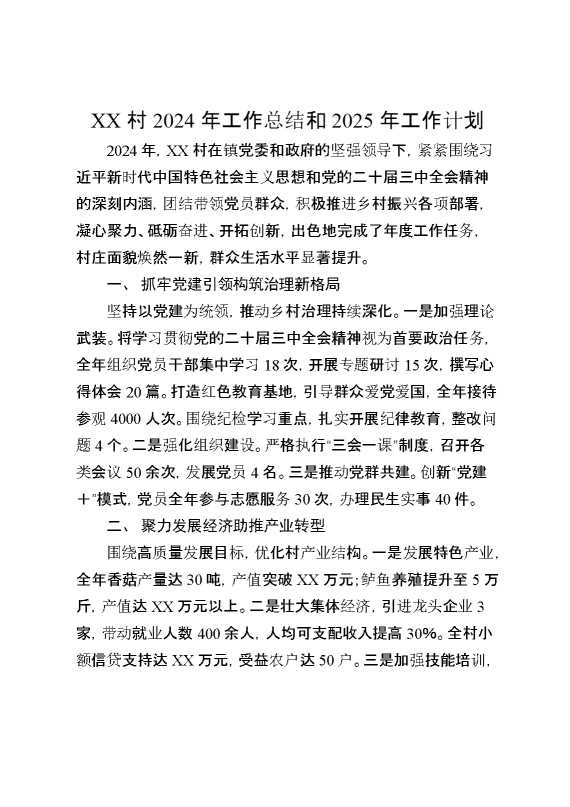 XX村2024年工作总结和2025年工作计划 2025-01-24 Word模板 80 购买前,请一定要先点击这里看看,欢迎持续关注,精彩模板每天推送 预览结束,本文件为word文档,一共4页,共1637字,请购买后,下载后查看 购买前,请一定要先点击这里看看,欢迎持续关注,精彩模板每天推送 资源下载下载价格29 RMBVIP免费升级VIP点击检测网盘有效后购买有任何充值和下载问题请加微信:xuexixuexi66 0 总结汇报