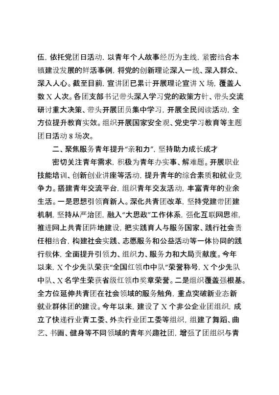 2024年团委工作总结和2025年工作计划 2025-01-24 Word模板 84 购买前,请一定要先点击这里看看,欢迎持续关注,精彩模板每天推送 预览结束,本文件为word文档,一共5页,共2341字,请购买后,下载后查看 购买前,请一定要先点击这里看看,欢迎持续关注,精彩模板每天推送 资源下载下载价格29 RMBVIP免费升级VIP点击检测网盘有效后购买有任何充值和下载问题请加微信:xuexixuexi66 0 总结汇报