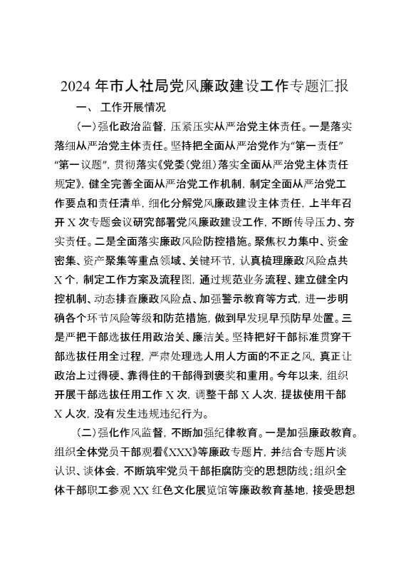 2024年市人社局党风廉政建设工作专题汇报 2025-01-24 Word模板 84 购买前,请一定要先点击这里看看,欢迎持续关注,精彩模板每天推送 预览结束,本文件为word文档,一共5页,共2162字,请购买后,下载后查看 购买前,请一定要先点击这里看看,欢迎持续关注,精彩模板每天推送 资源下载下载价格29 RMBVIP免费升级VIP点击检测网盘有效后购买有任何充值和下载问题请加微信:xuexixuexi66 0 总结汇报