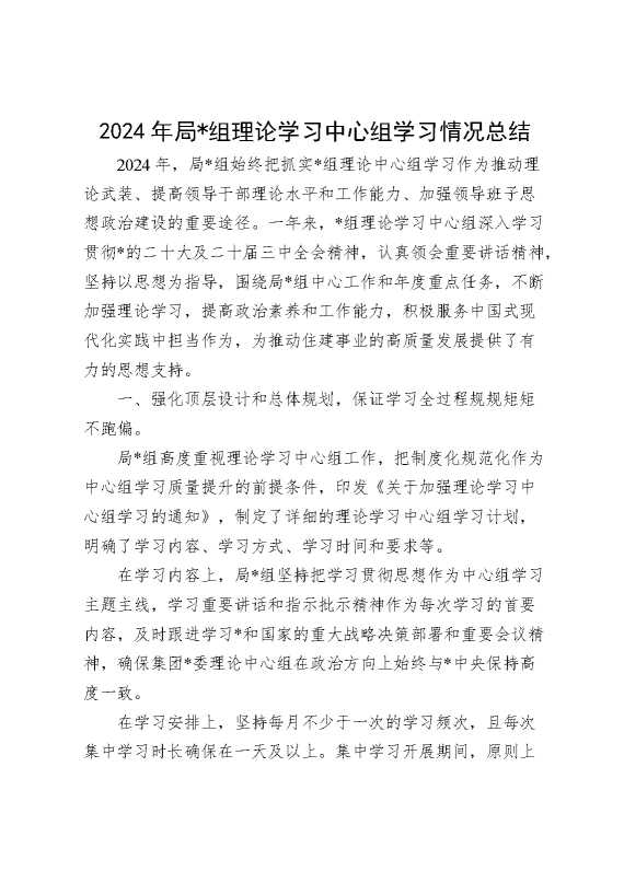 2024年局党组理论学习中心组学习情况总结 2025-01-24 Word模板 82 购买前,请一定要先点击这里看看,欢迎持续关注,精彩模板每天推送 预览结束,本文件为word文档,一共5页,共2057字,请购买后,下载后查看 购买前,请一定要先点击这里看看,欢迎持续关注,精彩模板每天推送 资源下载下载价格29 RMBVIP免费升级VIP点击检测网盘有效后购买有任何充值和下载问题请加微信:xuexixuexi66 0 总结汇报