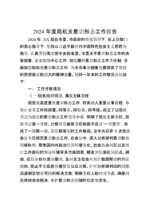 2024年度局机关意识形态工作报告 2025-01-24 Word模板 114 购买前,请一定要先点击这里看看,欢迎持续关注,精彩模板每天推送 预览结束,本文件为word文档,一共8页,共4197字,请购买后,下载后查看 购买前,请一定要先点击这里看看,欢迎持续关注,精彩模板每天推送 资源下载下载价格29 RMBVIP免费升级VIP点击检测网盘有效后购买有任何充值和下载问题请加微信:xuexixuexi66 0 总结汇报