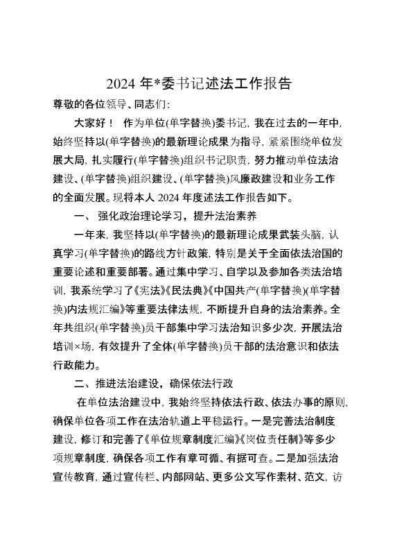 2024年党委书记述法工作报告 2025-01-24 Word模板 85 购买前,请一定要先点击这里看看,欢迎持续关注,精彩模板每天推送 预览结束,本文件为word文档,一共5页,共2101字,请购买后,下载后查看 购买前,请一定要先点击这里看看,欢迎持续关注,精彩模板每天推送 资源下载下载价格29 RMBVIP免费升级VIP点击检测网盘有效后购买有任何充值和下载问题请加微信:xuexixuexi66 0 总结汇报