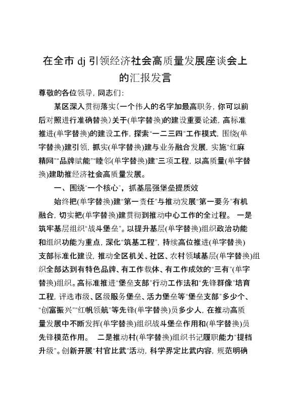 在全市党建引领经济社会高质量发展座谈会上的汇报发言 2025-01-24 Word模板 101 购买前,请一定要先点击这里看看,欢迎持续关注,精彩模板每天推送 预览结束,本文件为word文档,一共6页,共2764字,请购买后,下载后查看 购买前,请一定要先点击这里看看,欢迎持续关注,精彩模板每天推送 资源下载下载价格29 RMBVIP免费升级VIP点击检测网盘有效后购买有任何充值和下载问题请加微信:xuexixuexi66 0 演讲发言