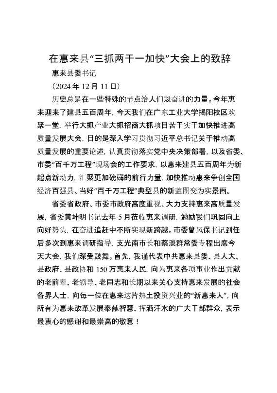 在惠来县“三抓两干一加快”大会上的致辞 2025-01-24 Word模板 128 购买前,请一定要先点击这里看看,欢迎持续关注,精彩模板每天推送 预览结束,本文件为word文档,一共5页,共2172字,请购买后,下载后查看 购买前,请一定要先点击这里看看,欢迎持续关注,精彩模板每天推送 资源下载下载价格29 RMBVIP免费升级VIP点击检测网盘有效后购买有任何充值和下载问题请加微信:xuexixuexi66 0 演讲发言