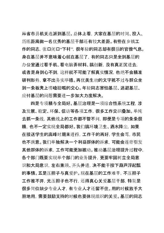 在“激发基层治理活力提升基层治理质效”座谈会上的发言提纲 2025-01-24 Word模板 74 购买前,请一定要先点击这里看看,欢迎持续关注,精彩模板每天推送 预览结束,本文件为word文档,一共8页,共4086字,请购买后,下载后查看 购买前,请一定要先点击这里看看,欢迎持续关注,精彩模板每天推送 资源下载下载价格29 RMBVIP免费升级VIP点击检测网盘有效后购买有任何充值和下载问题请加微信:xuexixuexi66 0 演讲发言