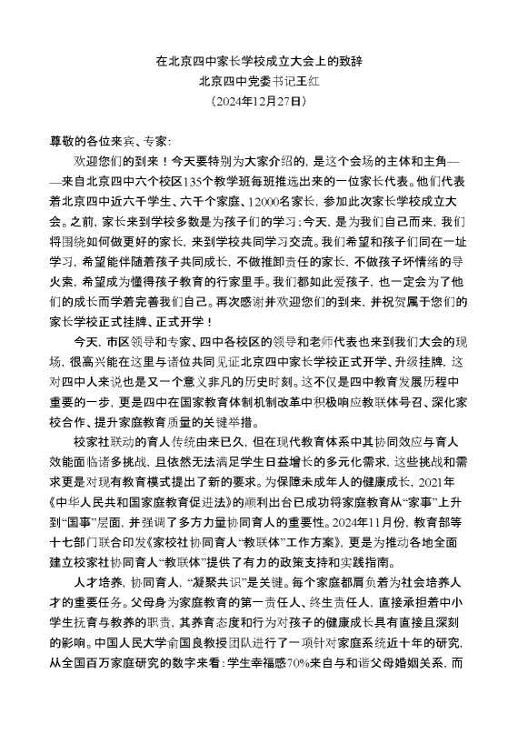 北京四中党委书记王红:在北京四中家长学校成立大会上的致辞 2025-01-27 Word模板 72 购买前,请一定要先点击这里看看,欢迎持续关注,精彩模板每天推送 预览结束,本文件为word文档,一共3页,共2306字,请购买后,下载后查看 购买前,请一定要先点击这里看看,欢迎持续关注,精彩模板每天推送 资源下载下载价格29 RMBVIP免费升级VIP点击检测网盘有效后购买有任何充值和下载问题请加微信:xuexixuexi66 0 演讲发言