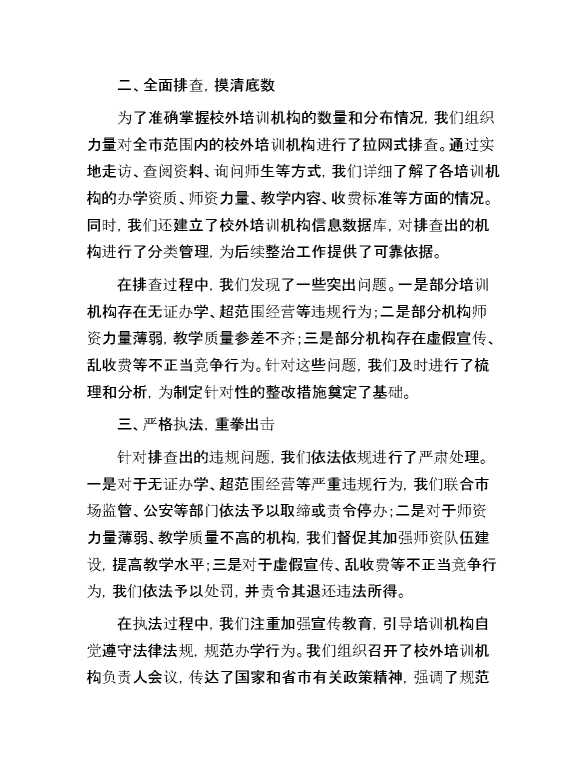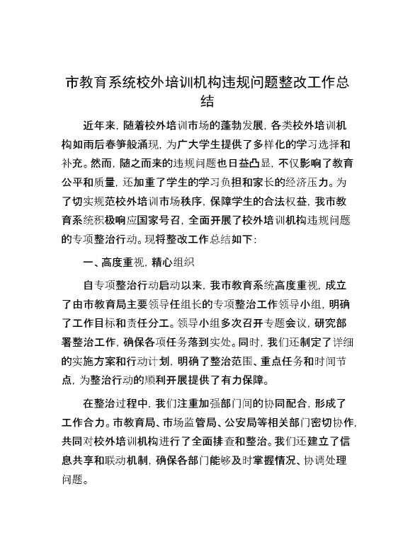 市教育系统校外培训机构违规问题整改工作总结 2025-01-27 Word模板 80 购买前,请一定要先点击这里看看,欢迎持续关注,精彩模板每天推送 预览结束,本文件为word文档,一共5页,共2206字,请购买后,下载后查看 购买前,请一定要先点击这里看看,欢迎持续关注,精彩模板每天推送 资源下载下载价格29 RMBVIP免费升级VIP点击检测网盘有效后购买有任何充值和下载问题请加微信:xuexixuexi66 0 总结汇报