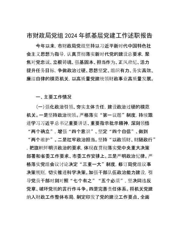 市财政局党组2024年抓基层党建工作述职报告 2025-01-27 Word模板 78 购买前,请一定要先点击这里看看,欢迎持续关注,精彩模板每天推送 预览结束,本文件为word文档,一共5页,共2235字,请购买后,下载后查看 购买前,请一定要先点击这里看看,欢迎持续关注,精彩模板每天推送 资源下载下载价格29 RMBVIP免费升级VIP点击检测网盘有效后购买有任何充值和下载问题请加微信:xuexixuexi66 0 总结汇报