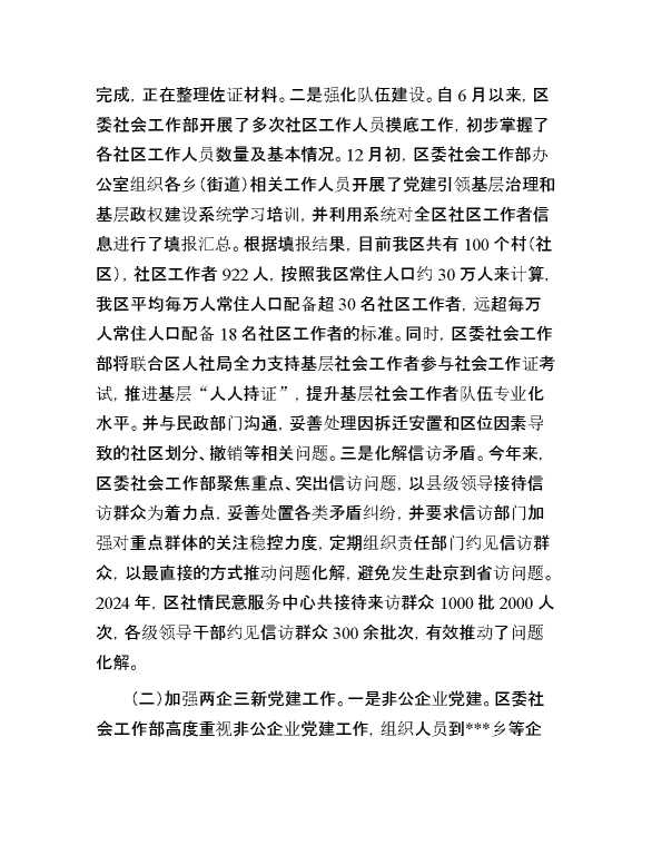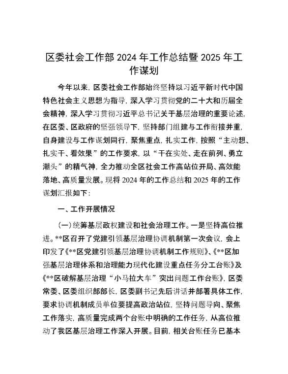 区委社会工作部2024年工作总结暨2025年工作谋划 2025-01-27 Word模板 89 购买前,请一定要先点击这里看看,欢迎持续关注,精彩模板每天推送 预览结束,本文件为word文档,一共6页,共2702字,请购买后,下载后查看 购买前,请一定要先点击这里看看,欢迎持续关注,精彩模板每天推送 资源下载下载价格29 RMBVIP免费升级VIP点击检测网盘有效后购买有任何充值和下载问题请加微信:xuexixuexi66 0 总结汇报