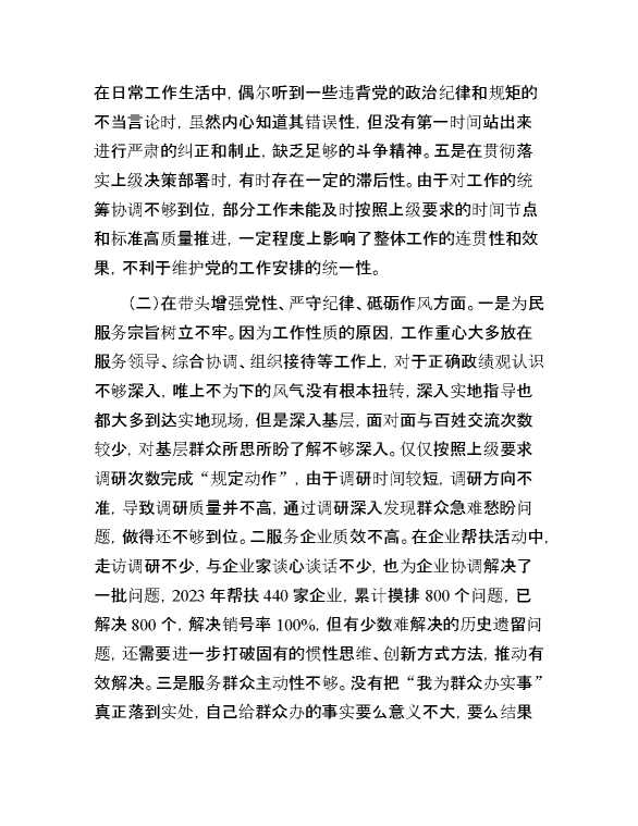 市直单位领导干部2024年度民主生活会对照检查材料(四个带头) 2025-01-27 Word模板 97 购买前,请一定要先点击这里看看,欢迎持续关注,精彩模板每天推送 预览结束,本文件为word文档,一共7页,共3028字,请购买后,下载后查看 购买前,请一定要先点击这里看看,欢迎持续关注,精彩模板每天推送 资源下载下载价格29 RMBVIP免费升级VIP点击检测网盘有效后购买有任何充值和下载问题请加微信:xuexixuexi66 0 党课及生活会