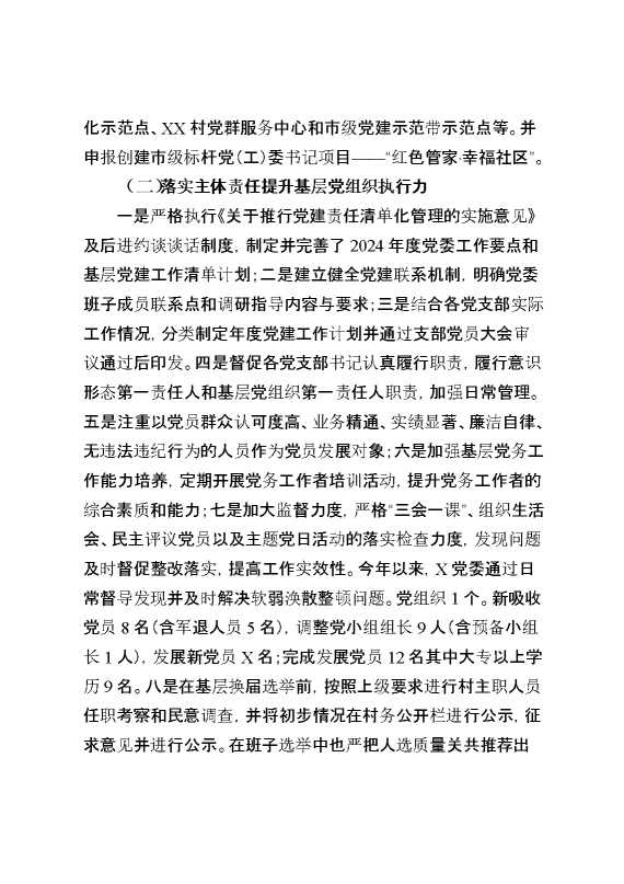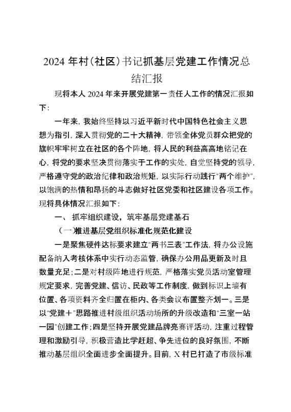 2024年村(社区)书记抓基层党建工作情况总结汇报(1) 2025-02-06 Word模板 103 购买前,请一定要先点击这里看看,欢迎持续关注,精彩模板每天推送 预览结束,本文件为word文档,一共15页,共7606字,请购买后,下载后查看 购买前,请一定要先点击这里看看,欢迎持续关注,精彩模板每天推送 资源下载下载价格29 RMBVIP免费升级VIP点击检测网盘有效后购买有任何充值和下载问题请加微信:xuexixuexi66 0 总结汇报