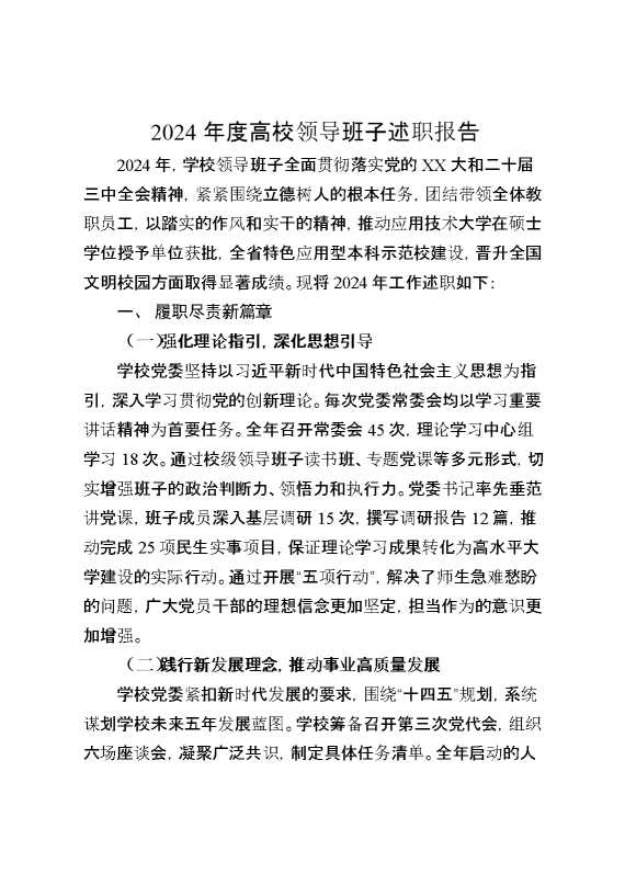 2024年度高校领导班子述职报告 2025-02-06 Word模板 104 购买前,请一定要先点击这里看看,欢迎持续关注,精彩模板每天推送 预览结束,本文件为word文档,一共4页,共1499字,请购买后,下载后查看 购买前,请一定要先点击这里看看,欢迎持续关注,精彩模板每天推送 资源下载下载价格29 RMBVIP免费升级VIP点击检测网盘有效后购买有任何充值和下载问题请加微信:xuexixuexi66 0 总结汇报