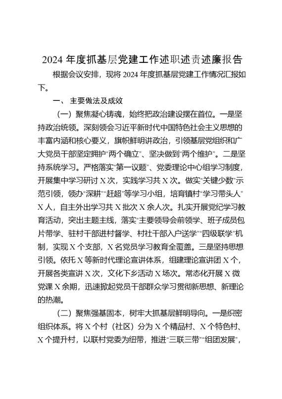 2024年度抓基层党建工作述职和述责述廉报告3 2025-02-06 Word模板 83 购买前,请一定要先点击这里看看,欢迎持续关注,精彩模板每天推送 预览结束,本文件为word文档,一共7页,共3042字,请购买后,下载后查看 购买前,请一定要先点击这里看看,欢迎持续关注,精彩模板每天推送 资源下载下载价格29 RMBVIP免费升级VIP点击检测网盘有效后购买有任何充值和下载问题请加微信:xuexixuexi66 0 总结汇报