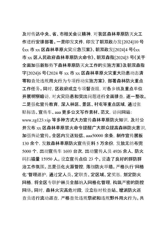 2024年某区森林草原防灭火工作总结 2025-02-06 Word模板 79 购买前,请一定要先点击这里看看,欢迎持续关注,精彩模板每天推送 预览结束,本文件为word文档,一共4页,共1936字,请购买后,下载后查看 购买前,请一定要先点击这里看看,欢迎持续关注,精彩模板每天推送 资源下载下载价格29 RMBVIP免费升级VIP点击检测网盘有效后购买有任何充值和下载问题请加微信:xuexixuexi66 0 总结汇报