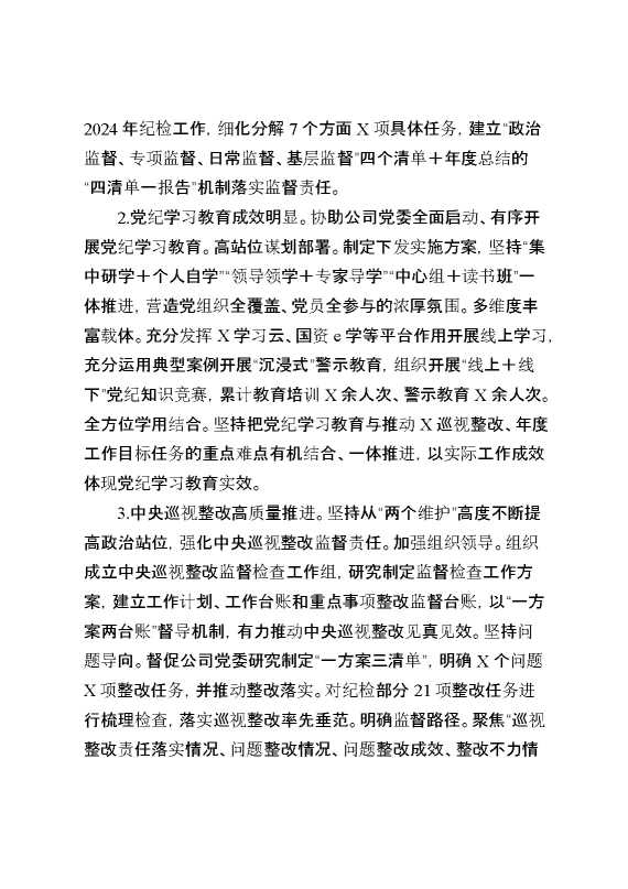国企纪委履行全面从严治党监督责任情况报告 2025-02-06 Word模板 77 购买前,请一定要先点击这里看看,欢迎持续关注,精彩模板每天推送 预览结束,本文件为word文档,一共10页,共4915字,请购买后,下载后查看 购买前,请一定要先点击这里看看,欢迎持续关注,精彩模板每天推送 资源下载下载价格29 RMBVIP免费升级VIP点击检测网盘有效后购买有任何充值和下载问题请加微信:xuexixuexi66 0 总结汇报