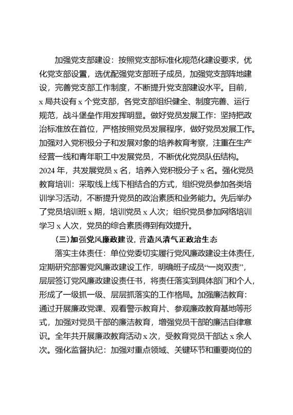 局机关2024年党建工作情况总结及2025年党建工作计划 2025-02-06 Word模板 82 购买前,请一定要先点击这里看看,欢迎持续关注,精彩模板每天推送 预览结束,本文件为word文档,一共7页,共3398字,请购买后,下载后查看 购买前,请一定要先点击这里看看,欢迎持续关注,精彩模板每天推送 资源下载下载价格29 RMBVIP免费升级VIP点击检测网盘有效后购买有任何充值和下载问题请加微信:xuexixuexi66 0 总结汇报