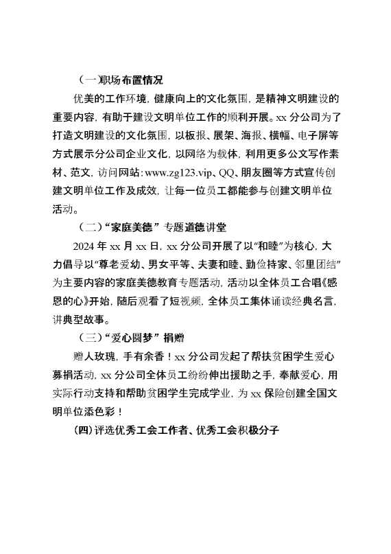 某分公司开展创建文明单位情况汇报 2025-02-06 Word模板 87 购买前,请一定要先点击这里看看,欢迎持续关注,精彩模板每天推送 预览结束,本文件为word文档,一共7页,共2722字,请购买后,下载后查看 购买前,请一定要先点击这里看看,欢迎持续关注,精彩模板每天推送 资源下载下载价格29 RMBVIP免费升级VIP点击检测网盘有效后购买有任何充值和下载问题请加微信:xuexixuexi66 0 总结汇报