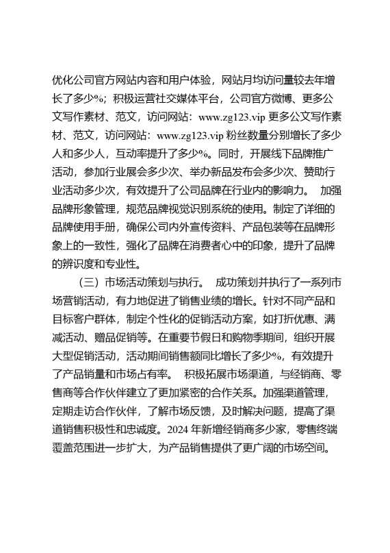 市场部总经理2024年工作总结及2025年工作计划 2025-02-06 Word模板 85 购买前,请一定要先点击这里看看,欢迎持续关注,精彩模板每天推送 预览结束,本文件为word文档,一共19页,共9299字,请购买后,下载后查看 购买前,请一定要先点击这里看看,欢迎持续关注,精彩模板每天推送 资源下载下载价格29 RMBVIP免费升级VIP点击检测网盘有效后购买有任何充值和下载问题请加微信:xuexixuexi66 0 总结汇报