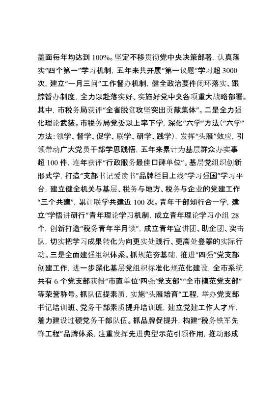 市税务局党组书记述职述廉述党建工作报告 2025-02-06 Word模板 92 购买前,请一定要先点击这里看看,欢迎持续关注,精彩模板每天推送 预览结束,本文件为word文档,一共7页,共3233字,请购买后,下载后查看 购买前,请一定要先点击这里看看,欢迎持续关注,精彩模板每天推送 资源下载下载价格29 RMBVIP免费升级VIP点击检测网盘有效后购买有任何充值和下载问题请加微信:xuexixuexi66 0 总结汇报