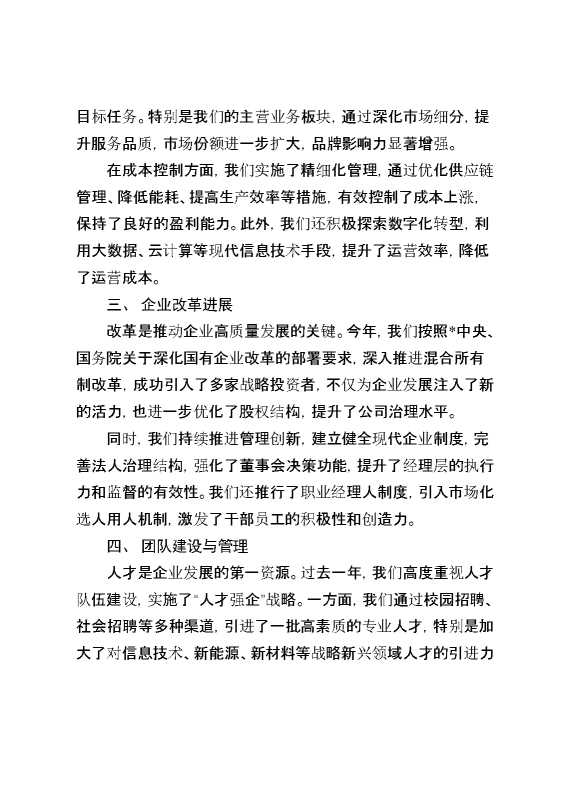 国企总经理2024年个人述职报告 2025-02-11 Word模板 77 购买前,请一定要先点击这里看看,欢迎持续关注,精彩模板每天推送 预览结束,本文件为word文档,一共5页,共2148字,请购买后,下载后查看 购买前,请一定要先点击这里看看,欢迎持续关注,精彩模板每天推送 资源下载下载价格29 RMBVIP免费升级VIP点击检测网盘有效后购买有任何充值和下载问题请加微信:xuexixuexi66 0 总结汇报
