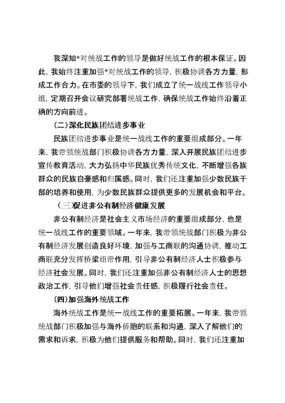 市委统战部部长个人述职报告 2025-02-11 Word模板 74 购买前,请一定要先点击这里看看,欢迎持续关注,精彩模板每天推送 预览结束,本文件为word文档,一共6页,共2137字,请购买后,下载后查看 购买前,请一定要先点击这里看看,欢迎持续关注,精彩模板每天推送 资源下载下载价格29 RMBVIP免费升级VIP点击检测网盘有效后购买有任何充值和下载问题请加微信:xuexixuexi66 0 总结汇报